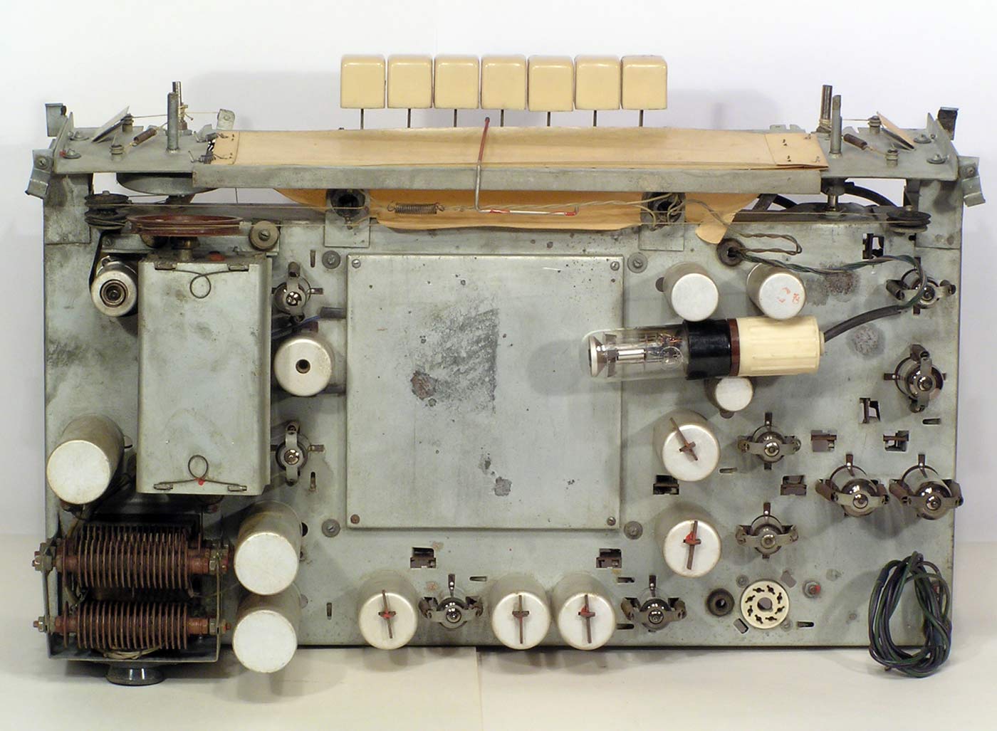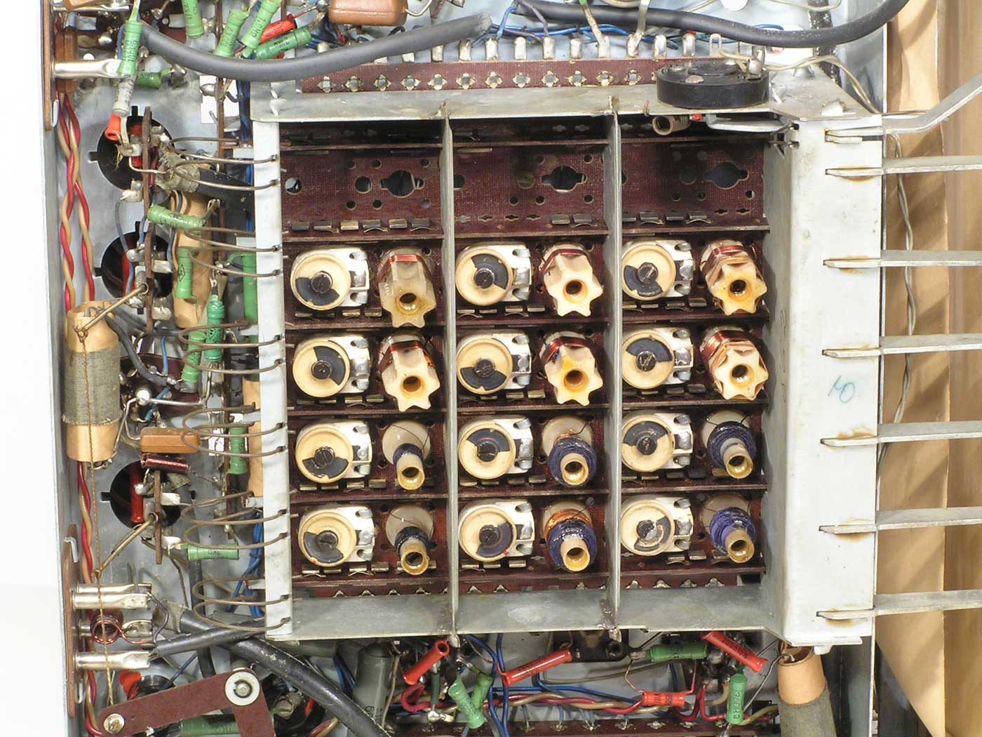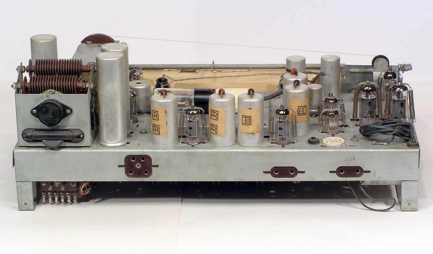 6Х2П, 6Ж3П, 6П1П, 6Е5С, 2 блока селеновых выпрямителей. Имеется АРУ, ограничение