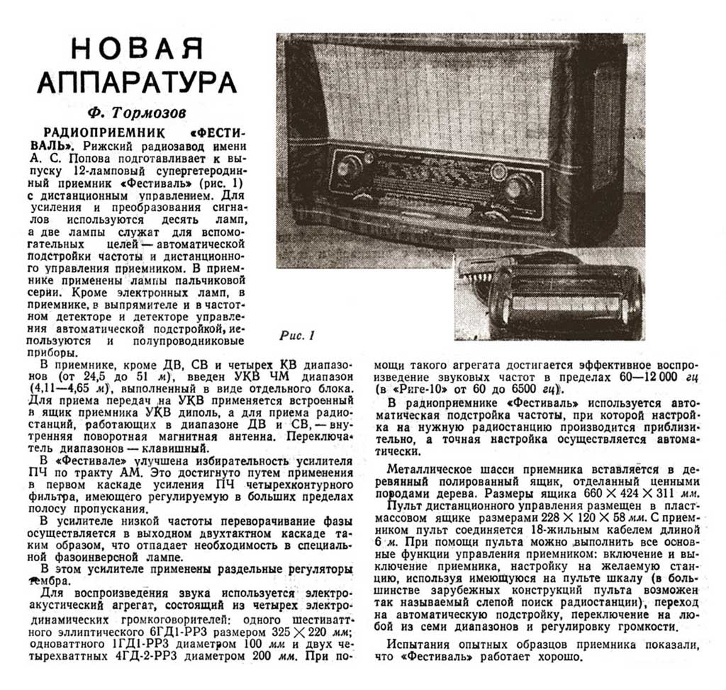 сетевой ламповый "Фестиваль" с осени 1957 года выпускал Рижский радиозавод