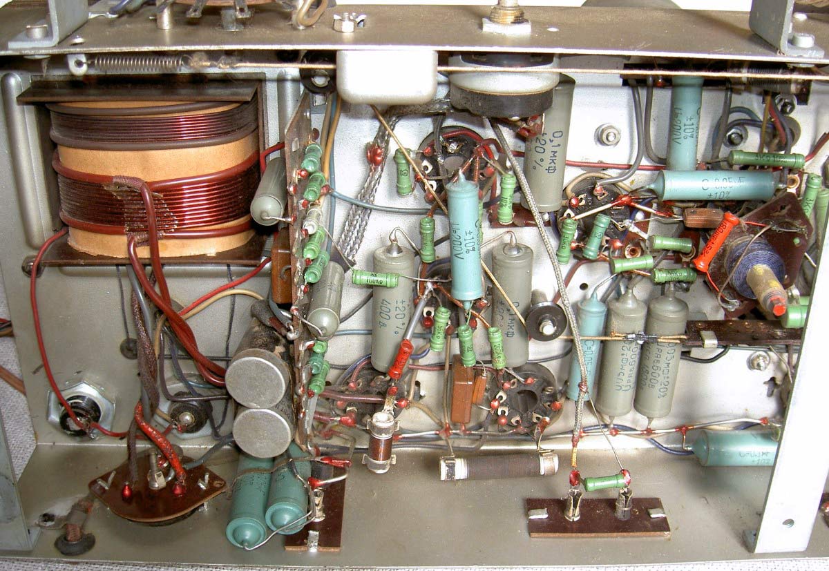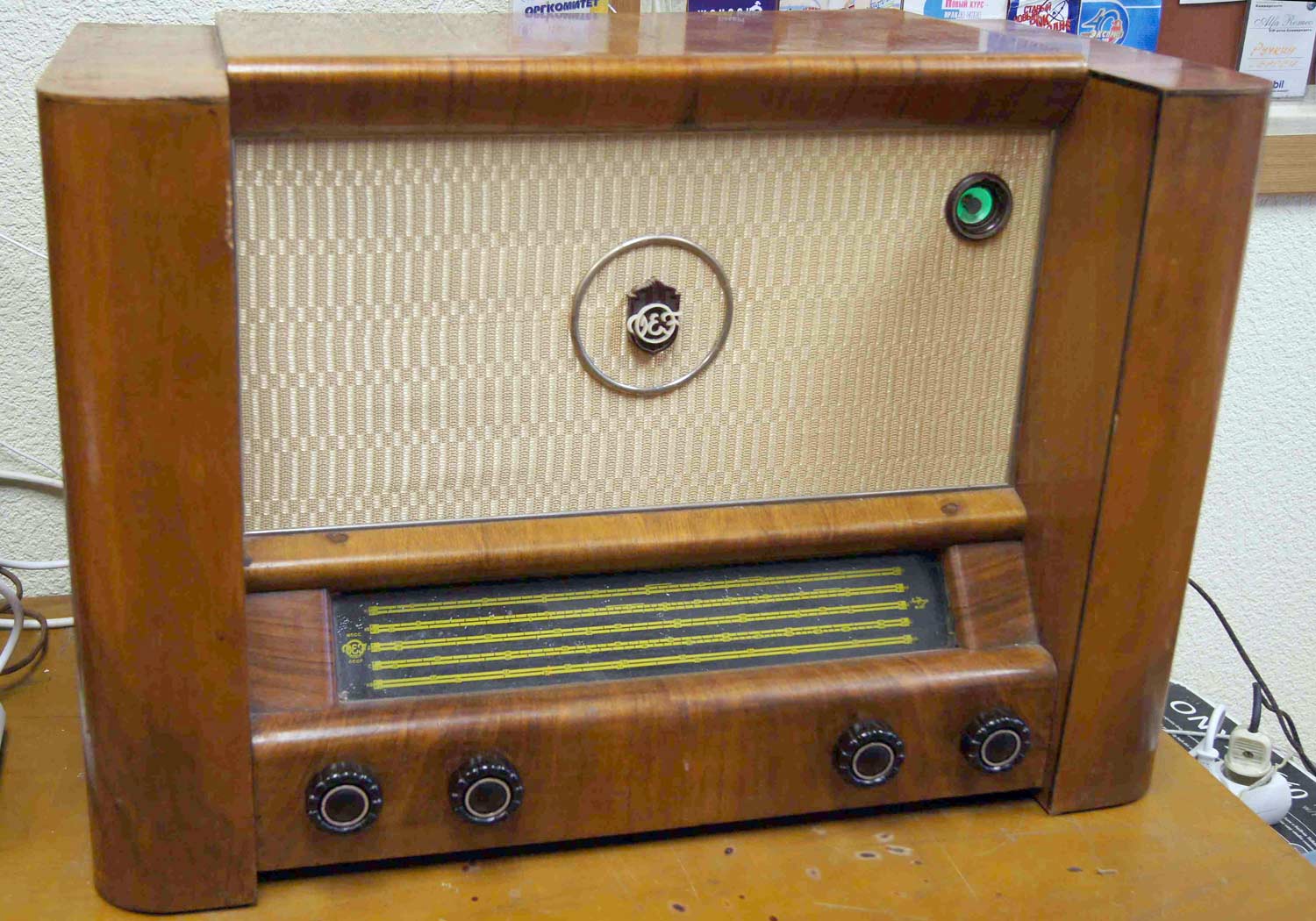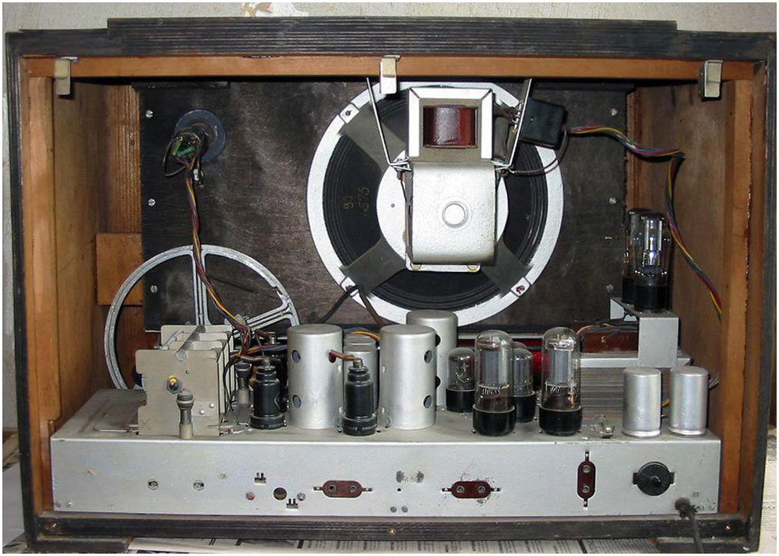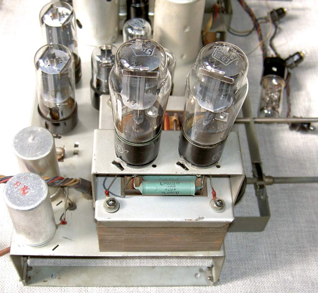 собран на 13 радиолампах 6К7, 6А7, 6А8, 6К7 (2), 6Х6С, 6С5, 6Н7С, 6П3С