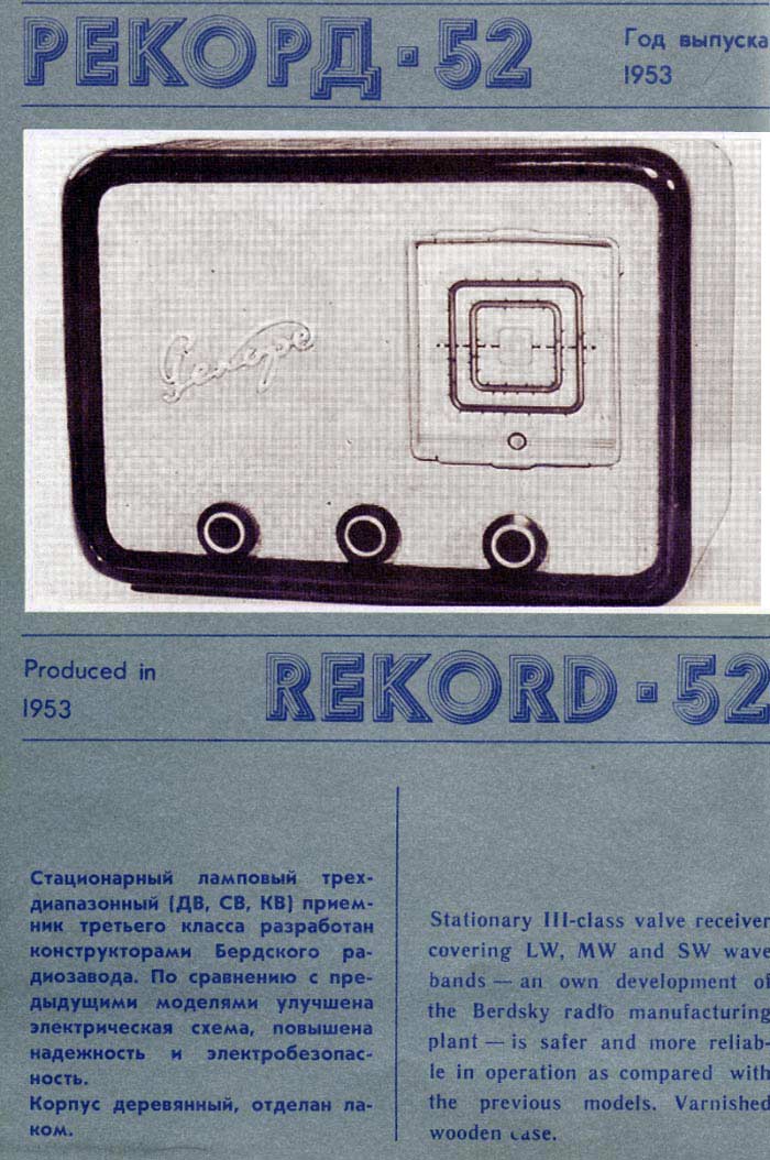 сетевой ламповый "Рекорд-52" с 1952 года выпускал Бердский радиозавод.