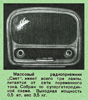 радиоприёмник 4-го класса ''Свет'' разработан в Институте радиовещательного