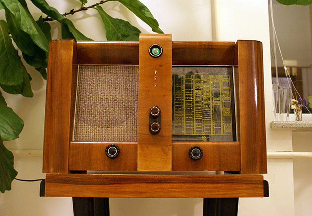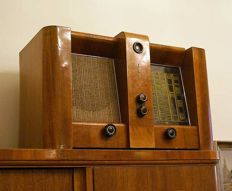 сетевой ламповый "ВЭФ М-1357" с 1945 года выпускал Рижский завод "ВЭФ".