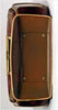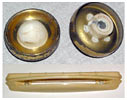 штампован из металла, с применением никелирования и многослойного лакирования.