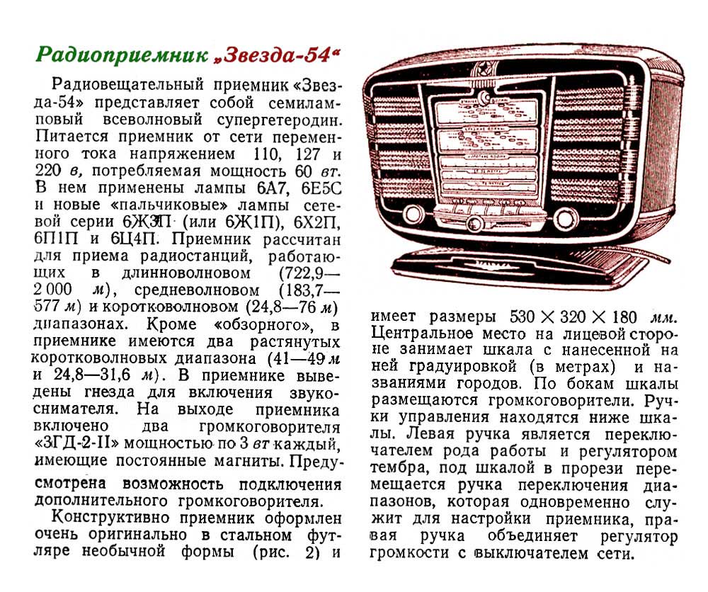 радиоприёмника ''Звезда-54''. В 1954 году производство приёмника параллельно