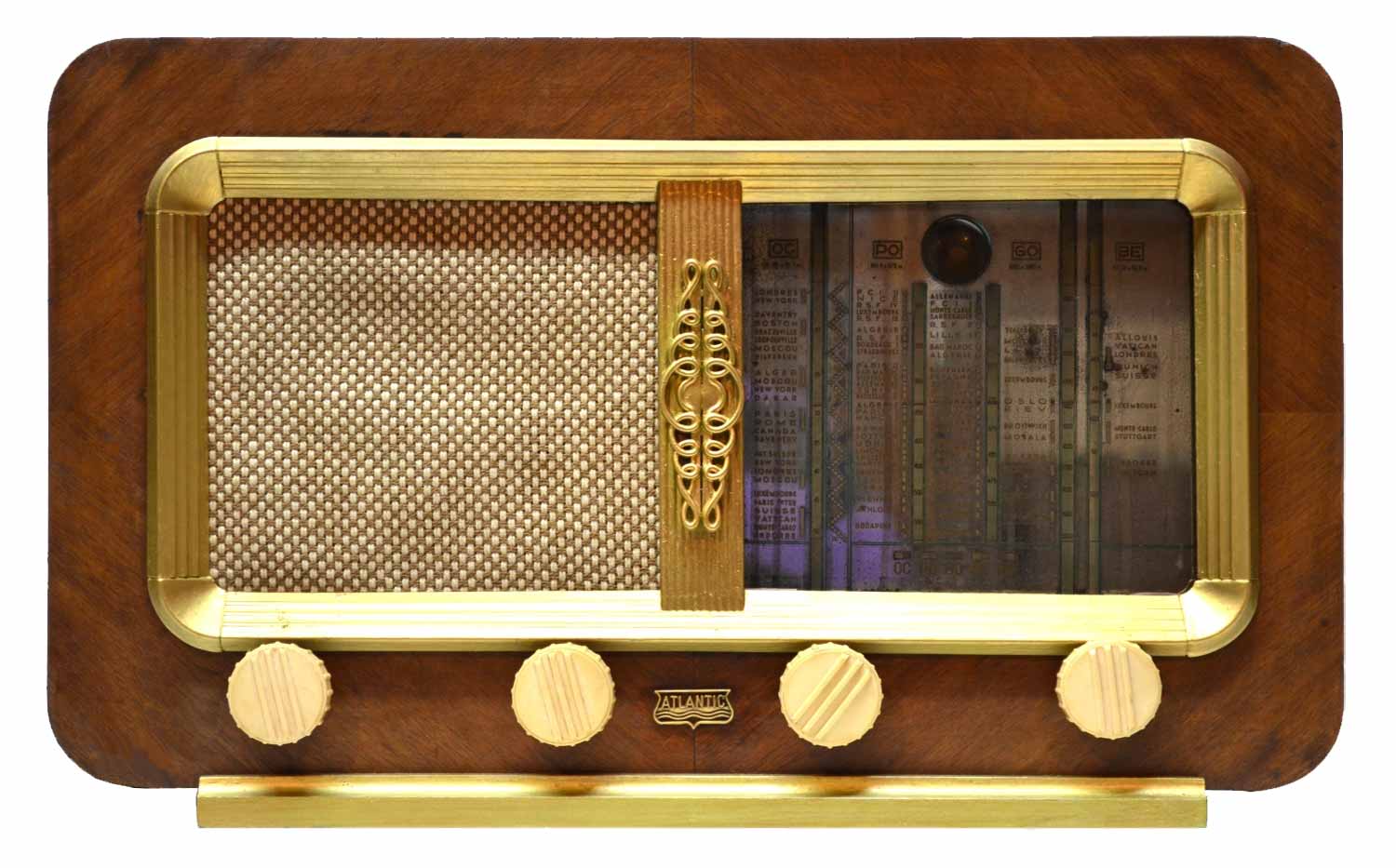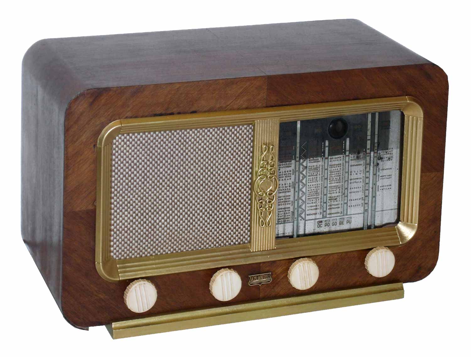 Сетевой ламповый радиоприёмник "Atlantic-A24A" выпускался с 1952 года Коммерческой радиотехнической компанией, Париж. Супергетеродин. 6 радиоламп. Диапазоны ДВ, СВ, КВ. Габариты - 465x285x210 мм.