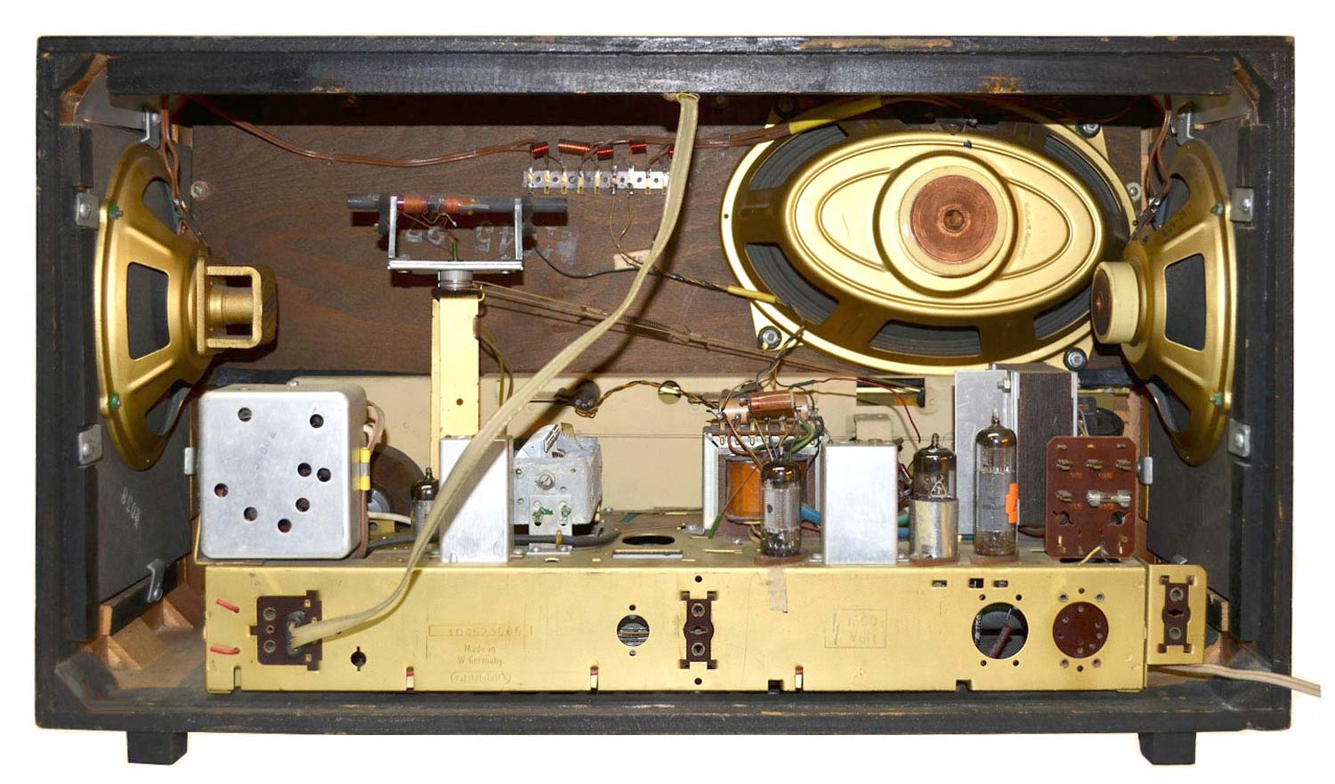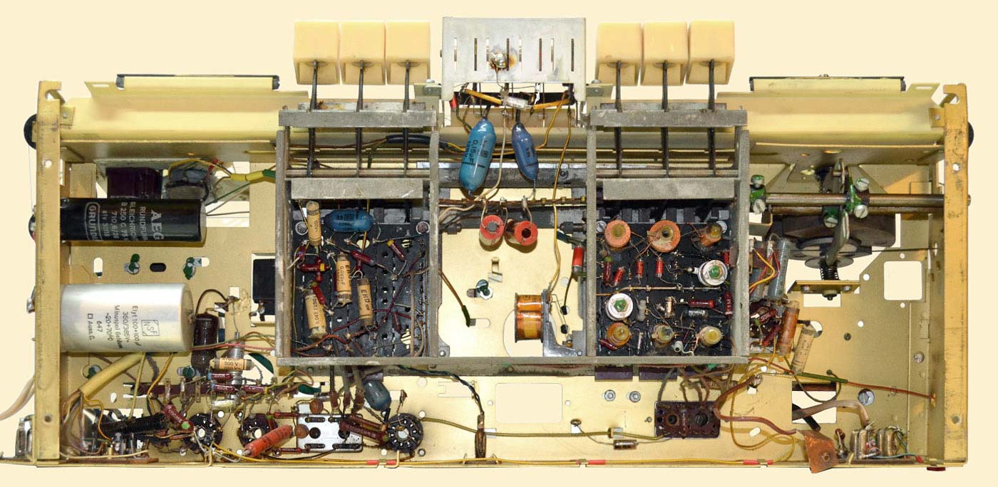 на 6-ти радиолампах, включая "магический глаз". Диапазоны LW, MW, KW -