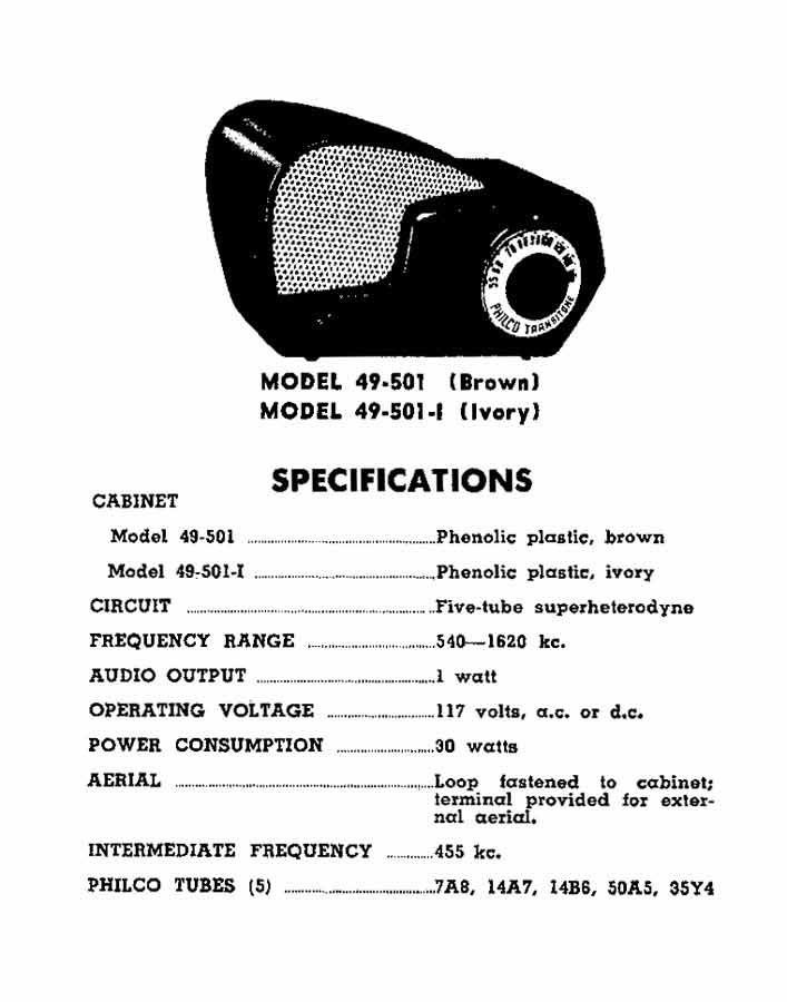 Transitone 49-501" выпускался возможно с 1948 года компанией "Philco" в