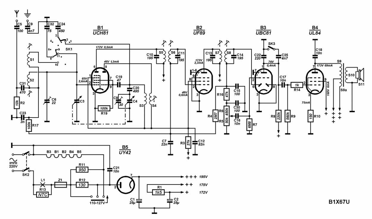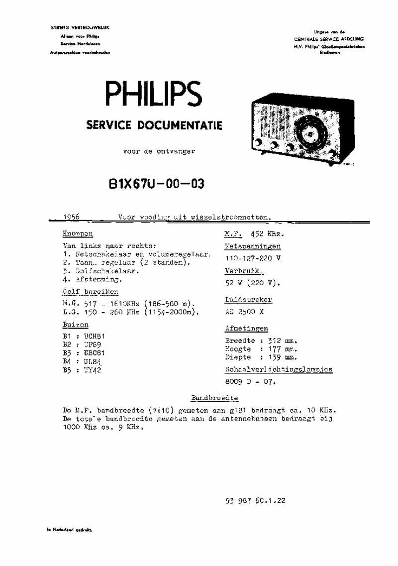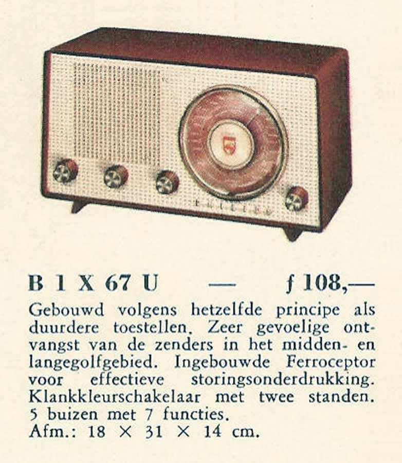 B1X67U" выпускался с 1956 года нидерландской компанией "Philips". Радиоприёмник