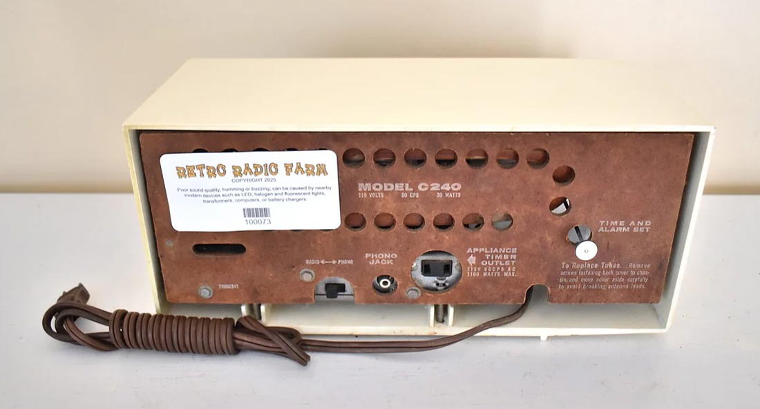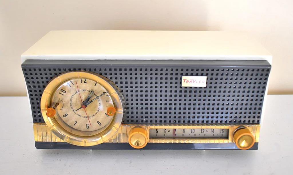 Сетевой ламповый радиоприёмник "Travler C240" выпускался с 1959 года компанией "Travler", США. Супергетеродин на 3 радиолампах. Диапазон СВ. Питание от сети ~ 120 В. Габариты 33х13х18 см. Масса 3 кг.