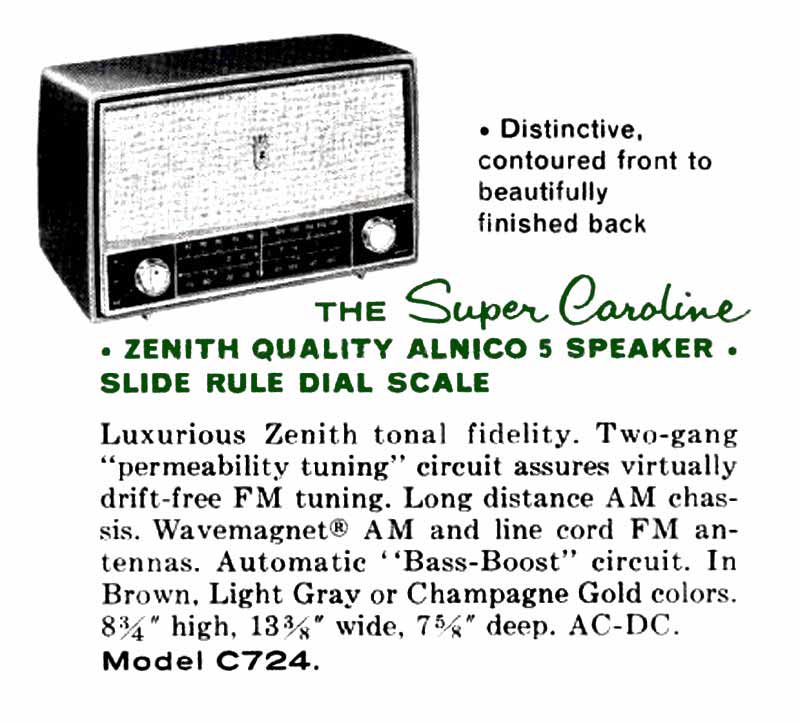 C724" выпускался с 1946 года корпорацией "Zenith Radio", США, Чикаго, Иллинойс.