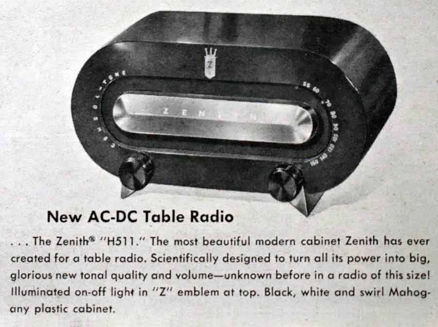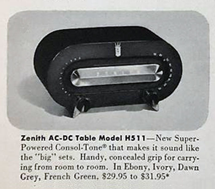 H511" выпускался с 1951 года корпорацией "Zenith Radio", США. Приёмник
