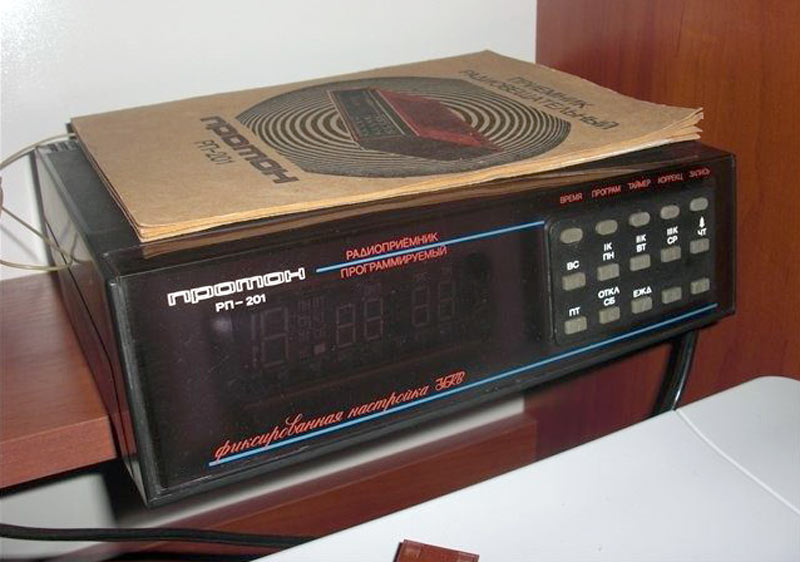 для приёма в диапазоне УКВ на встроенную антенну с функцией часов, таймера