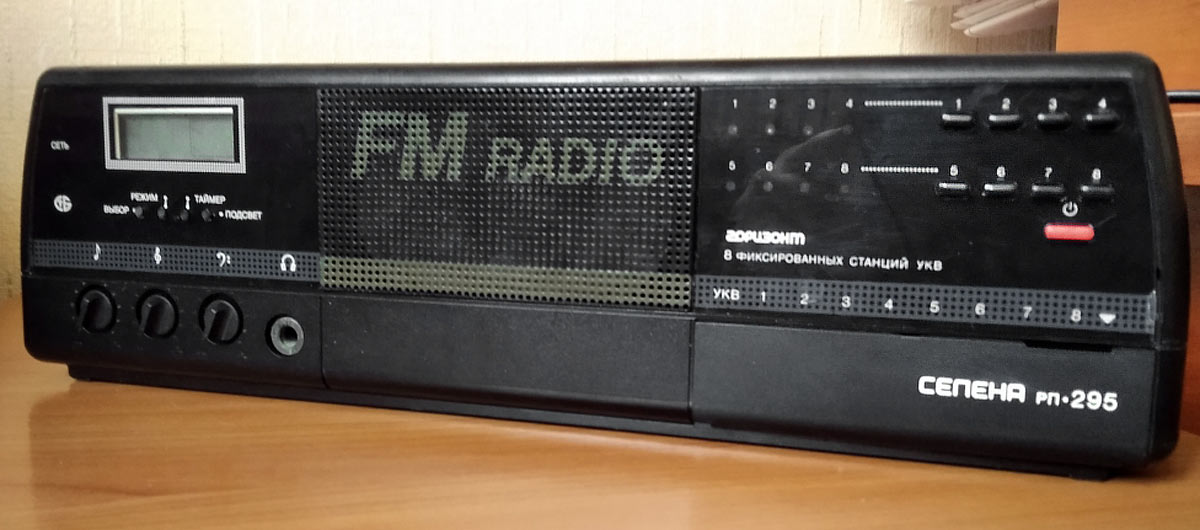 Сетевой стационарный радиоприёмник "Селена РП 295" выпускался возможно с 1994 года Минским ПО "Горизонт". Эфирная радиоточка УКВ-ЧМ диапазона 66...74 МГц. Фотографии модели Александра Олёх.