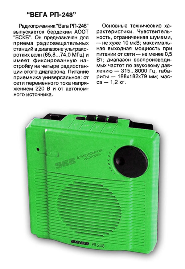 транзисторный радиоприёмник "Вега РП-248" с 1993 года выпускал Бердский