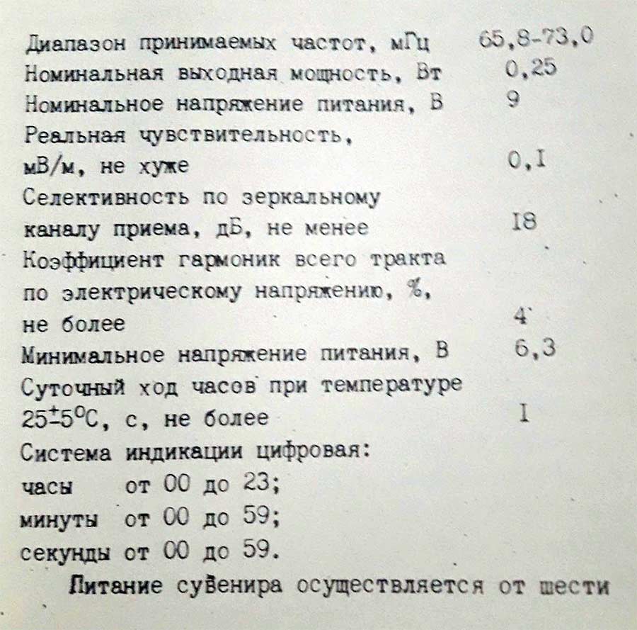 и 9 транзисторов. Габариты радиоприёмника - 175 х 115 х 60 мм. Масса -