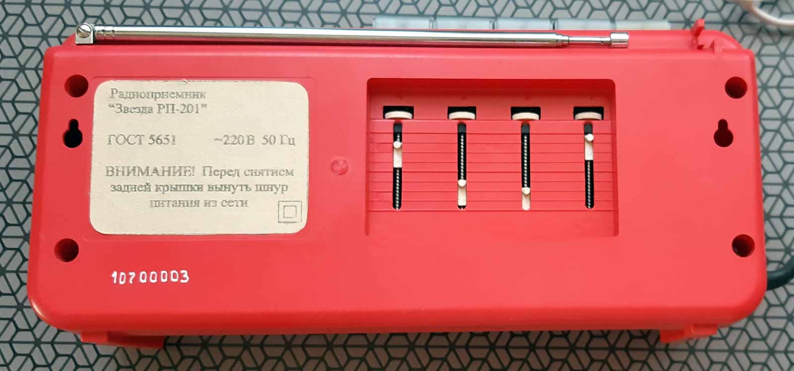 Сетевой УКВ радиоприёмник "Звезда РП-201" выпускался с 2000 года Загорским ПО "Звезда". Диапазон частот 65...74 МГц. Настройка фиксированная на четыре заранее настроенные радиовещательные станции.
