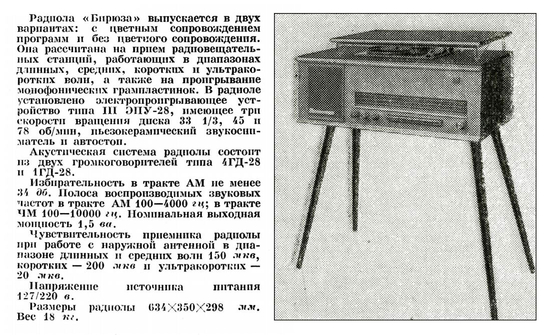 "Бирюза" с 1968 года выпускал Муромский завод РИП. Радиола "Бирюза" выпускалась