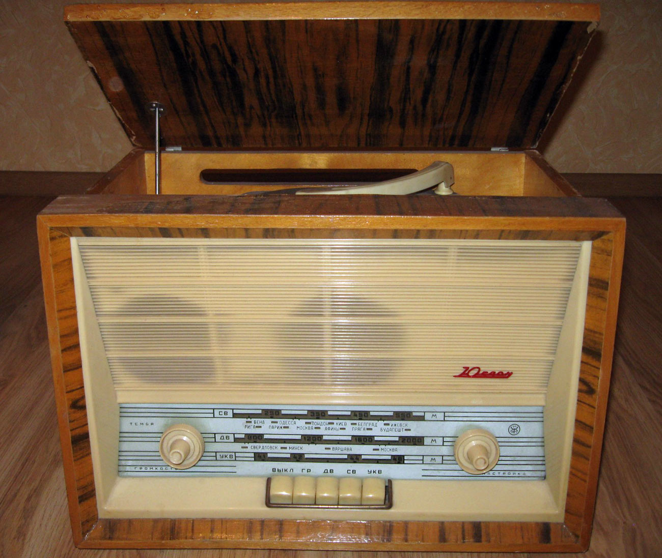 Радиола ''Югдон'' представляет собой пятиламповый радиоприёмник, объединённый