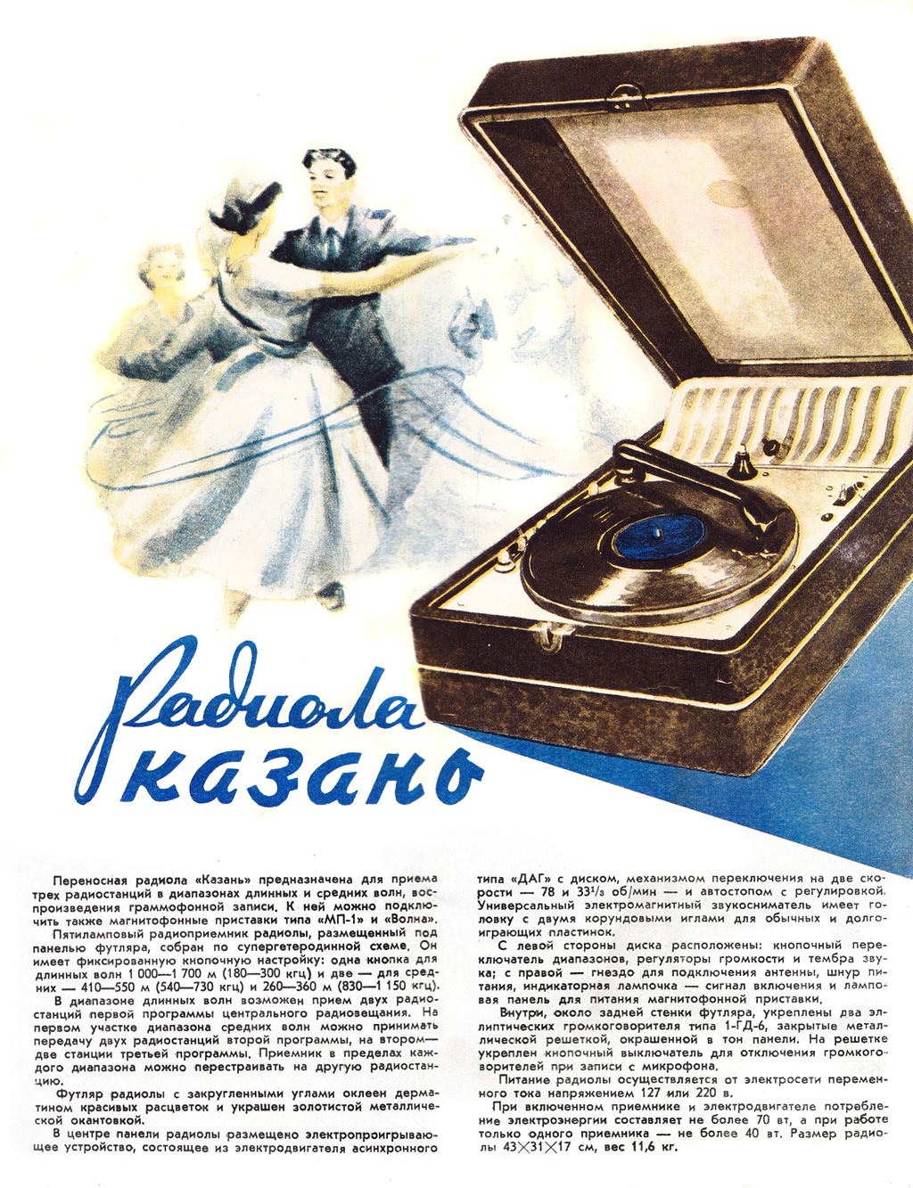 "Радиоприбор". Радиола объединяет в общем футляре радиоприёмник и электропроигрыватель