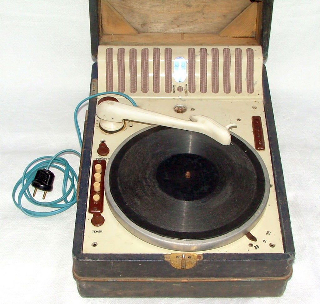 звукоснимателя УЭЗ-1 и асинхронного двигателя ДАГ. От сети при прослушивании