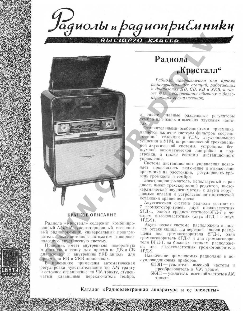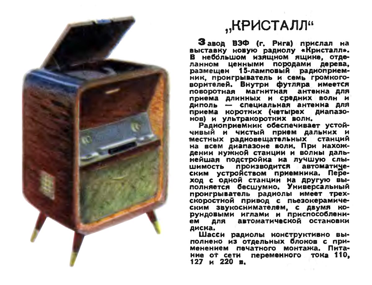 1959 году разработана радиола "Кристалл-2" с высокими акустическими параметрами