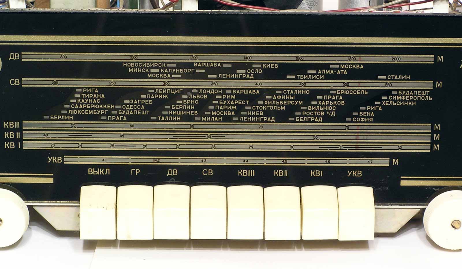 МГц, КВ-II 5,2...7,5 МГц, КВ-III 3,95...5,5 МГц, УКВ 64,5...73 МГц. ПЧ 465