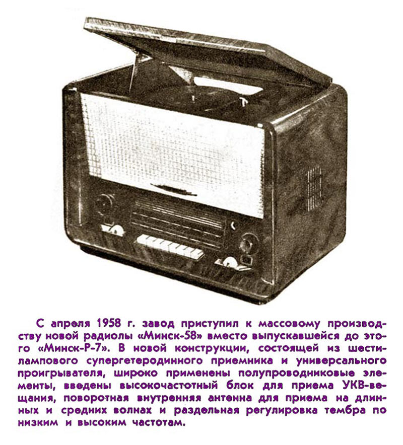 ИРПА. Описание радиолы "Минск-58" в журнале Радио