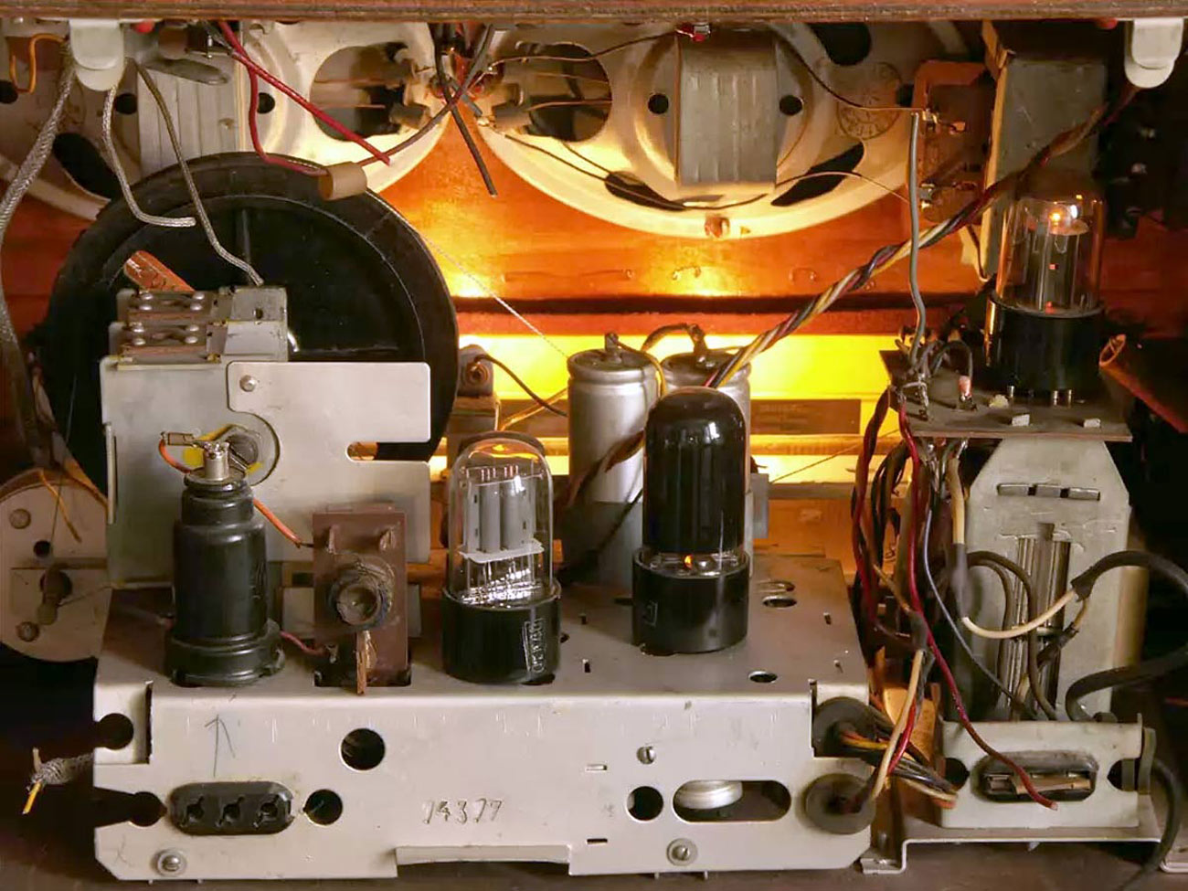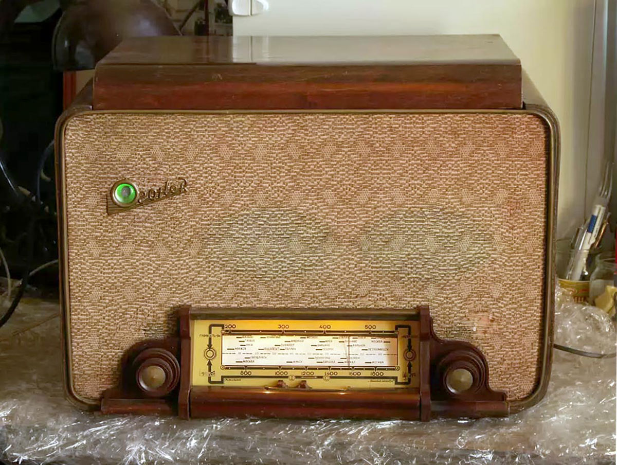 ламповый супергетеродин, объединённый с двухскоростным ЭПУ, с электромагнитным