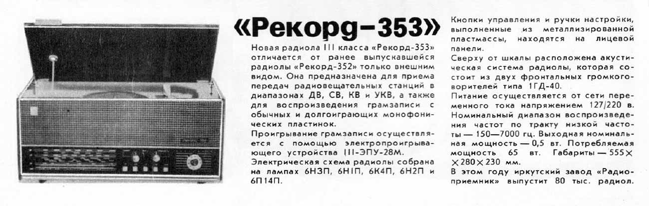 ламповая "Рекорд-353" с 1973 года выпускалась Иркутским заводом радиоприёмников