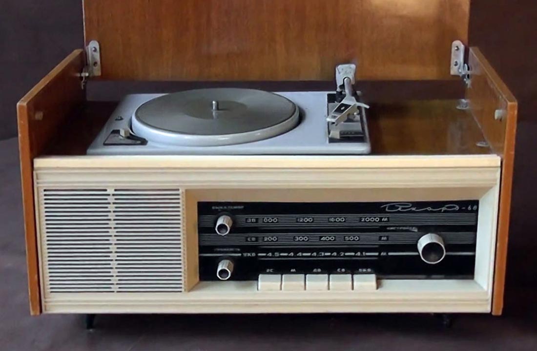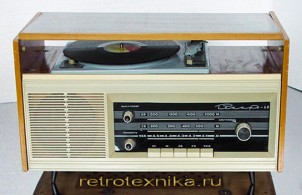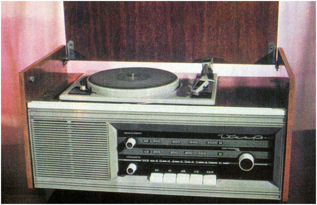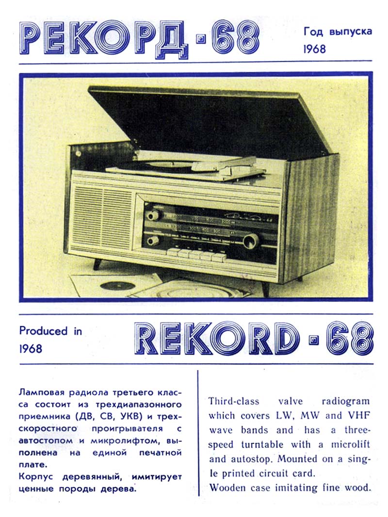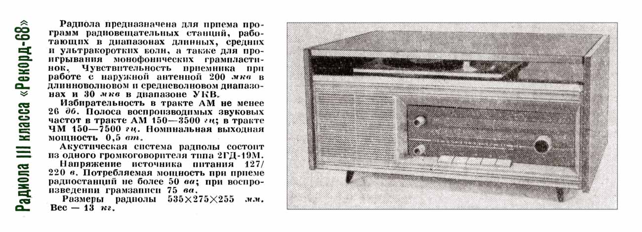 Радиола "Рекорд-68" состоит из 5-ти лампового приёмника 3-го класса и универсального