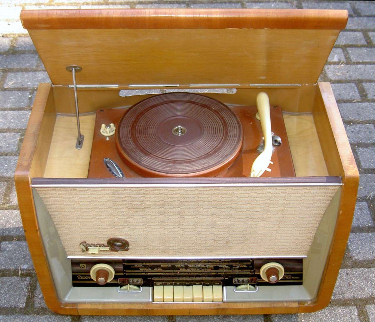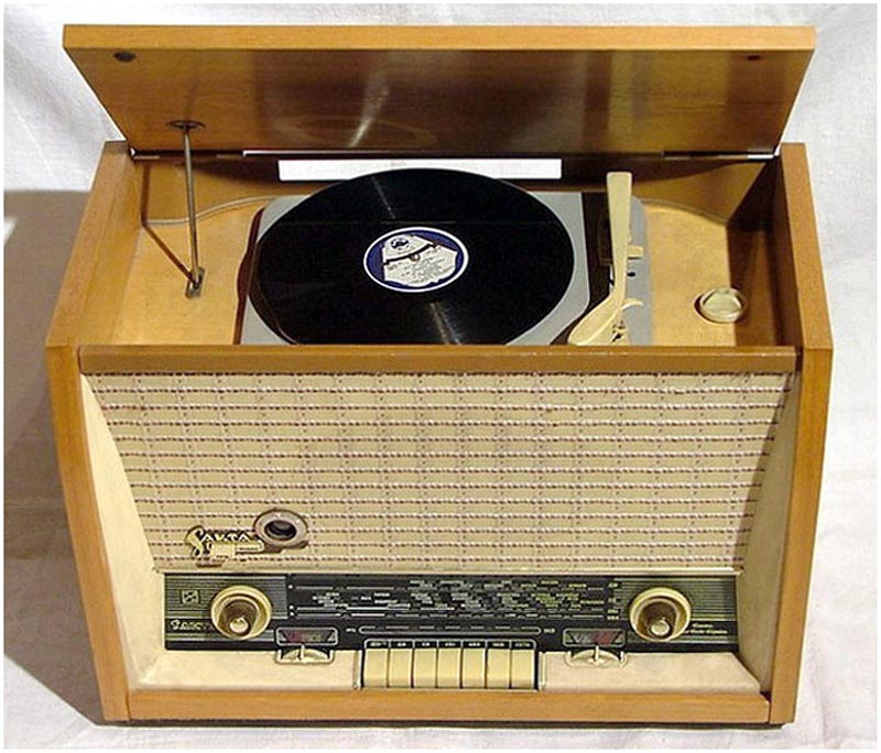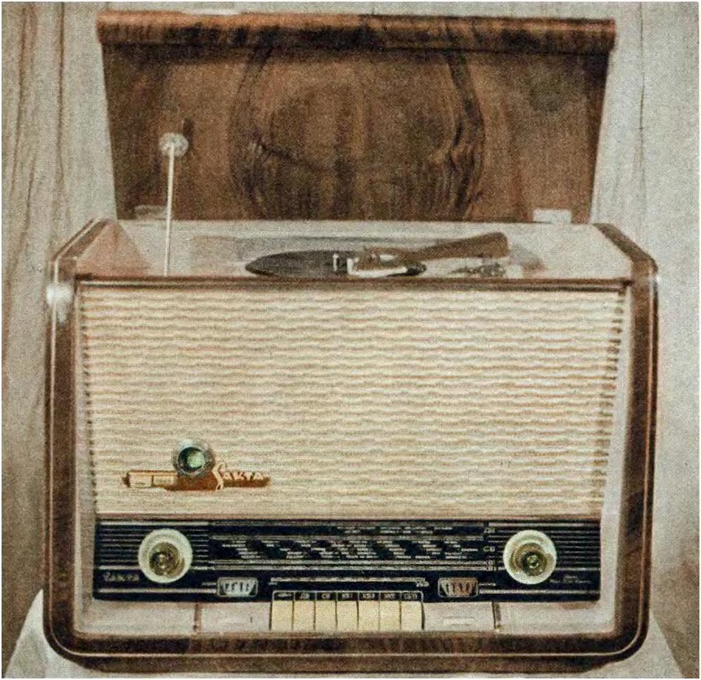 имени А.С.Попова. Радиола состоит из 7-ми лампового приёмника и трёхскоростного