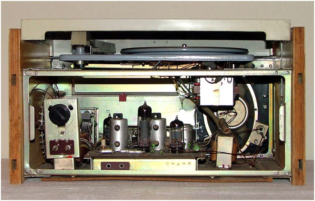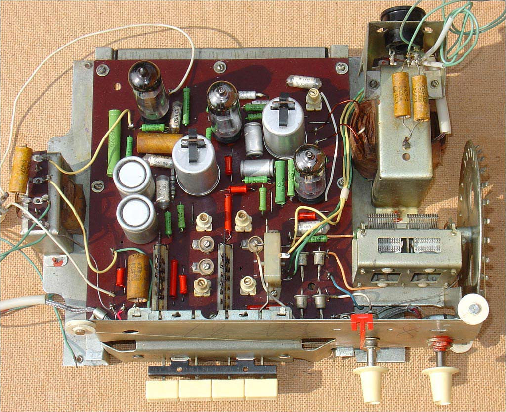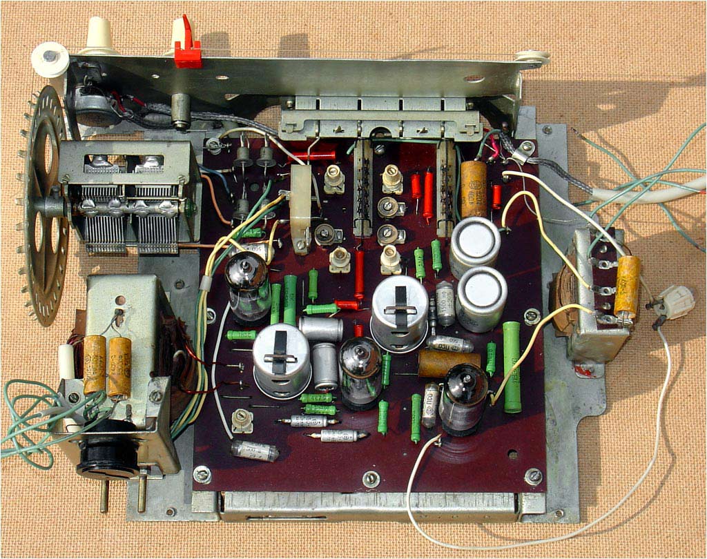 Радиола собрана на трёх лампах 6И1П (2 шт) и 6П14П а также 5 диодах Д2Д