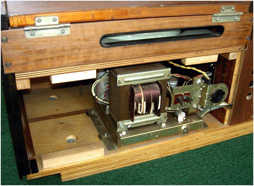 рядом с приёмником, во втором над ним. Габариты радиолы 1-го варианта 1085х285х345