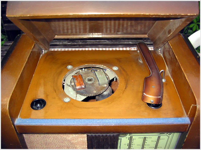 на панели из дерева. Включение звукоснимателя и двигателя производилось