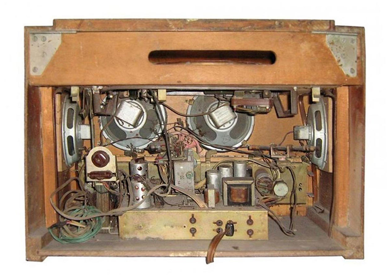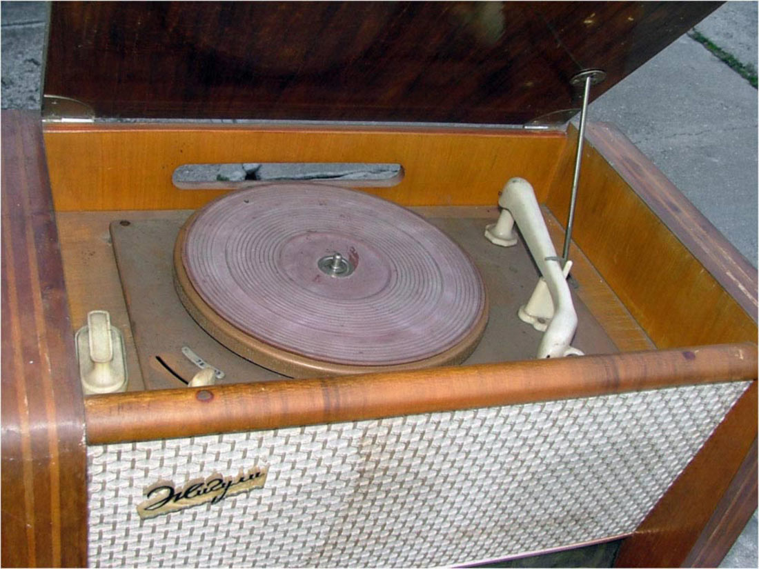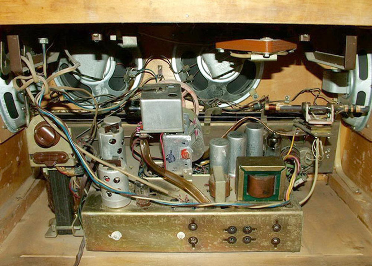 система радиолы объемного звучания и состоит из четырёх громкоговорителей.