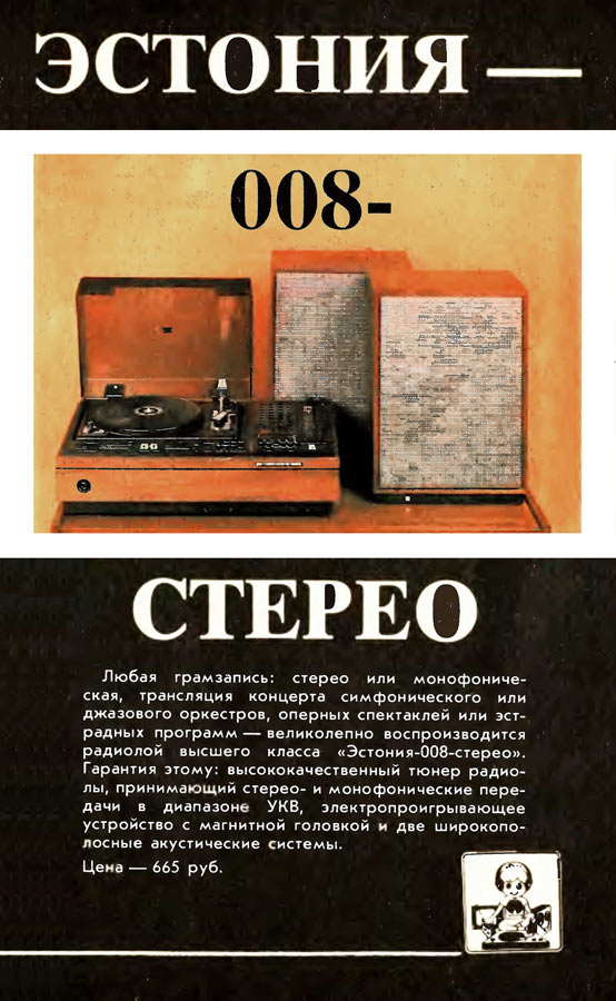 радиола высшего класса "Эстония-008-стерео" с 1979 года выпускалась Таллинским