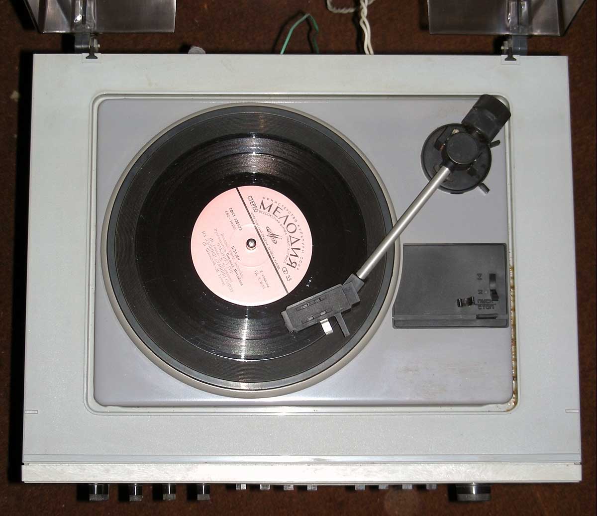 Скорость вращения диска ЭПУ 33 и 45 об/мин. Коэффициент детонации 0,25%.