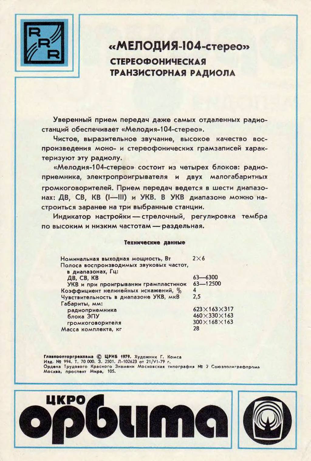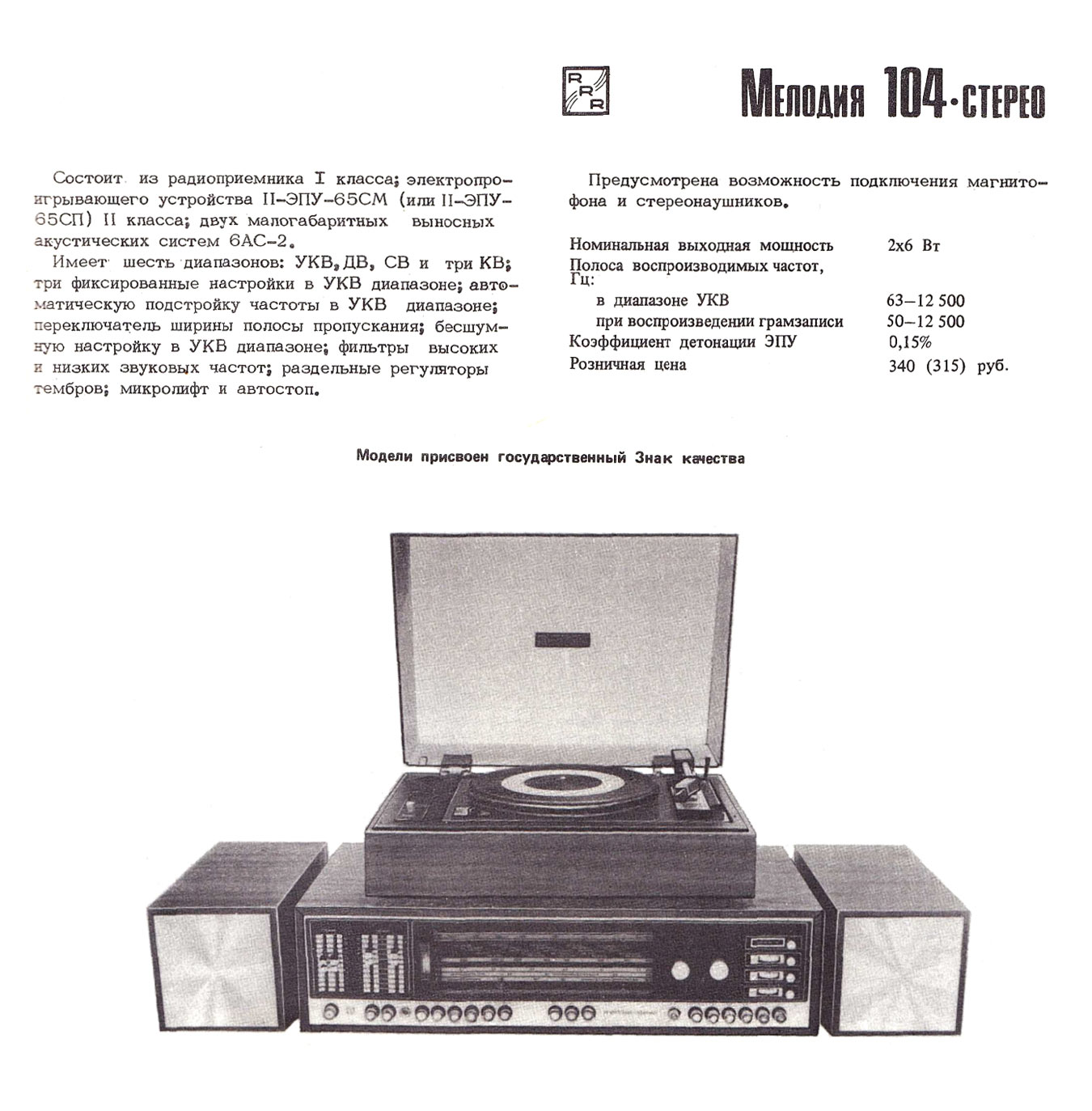 стереофоническая блочная радиола "Мелодия-104-стерео" с 1978 года выпускалась