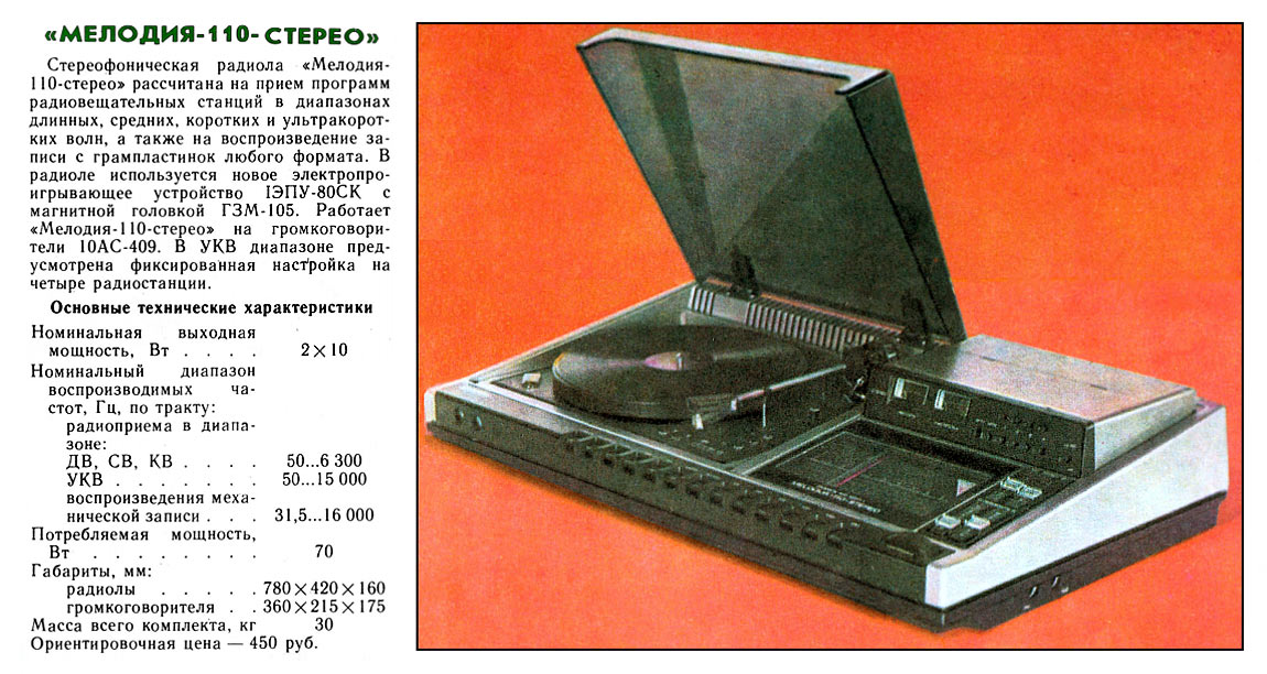 радиола "Мелодия-110-стерео" разработана и подготовлена к выпуску в 1980