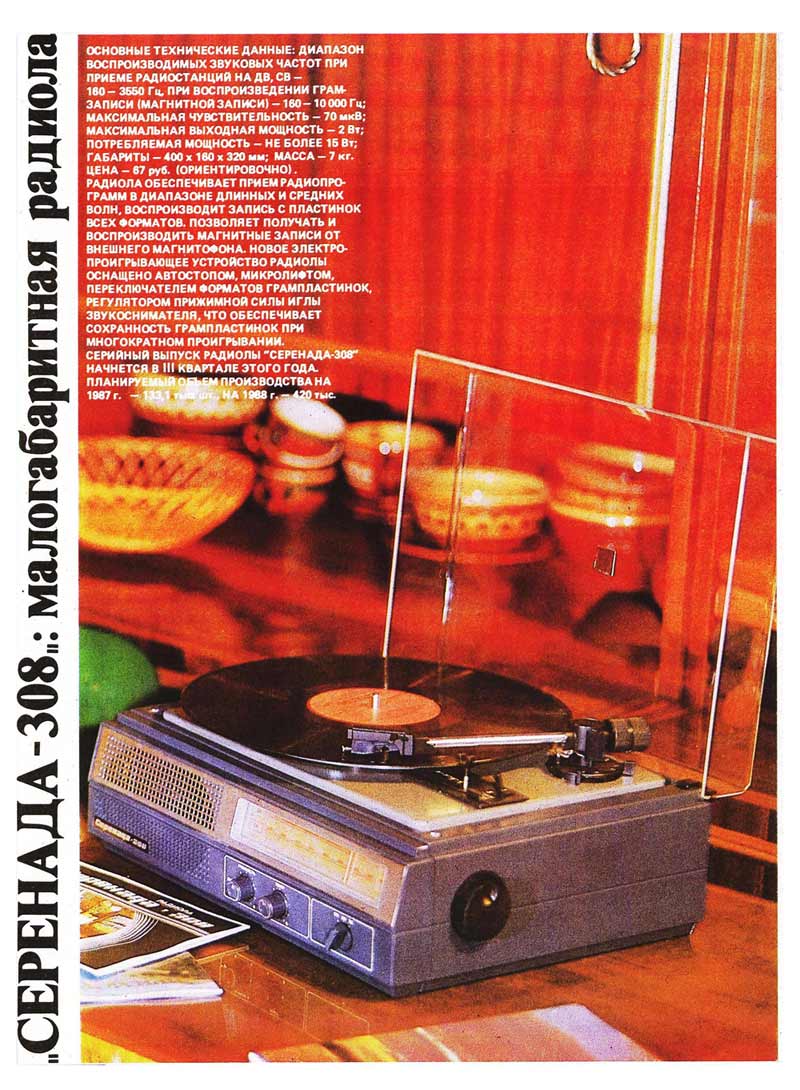 заводом "Радиоприбор". Радиола сразу именовалась как "Серенада-308". Это