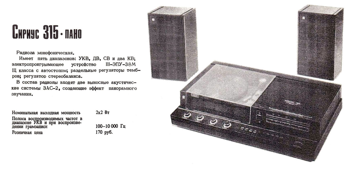 радиолы "Сириус-З15-пано".