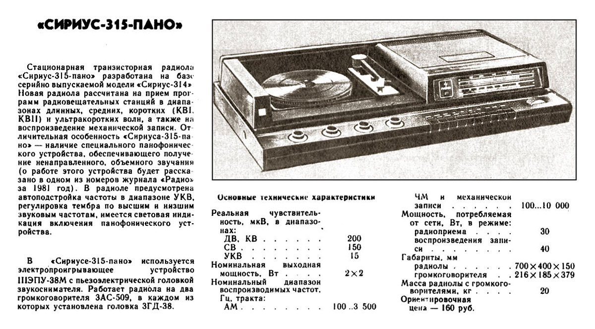 радиозаводом. Радиола разработана на основе модели ''Сириус-314'' и работает