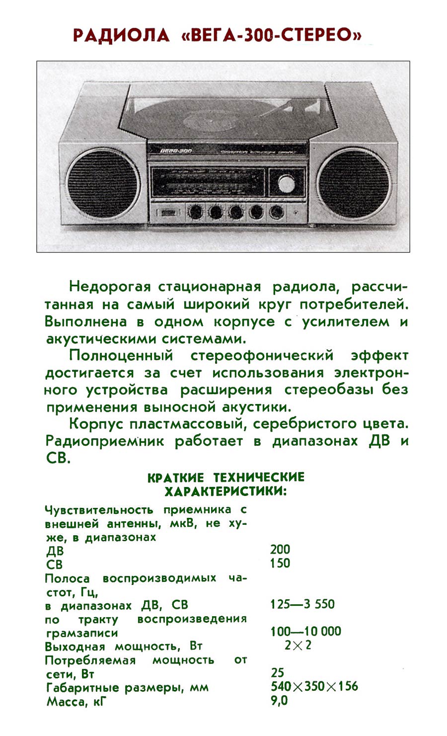 транзисторная радиола 3-го класса "Вега-300-стерео" с 1986 года выпускалась