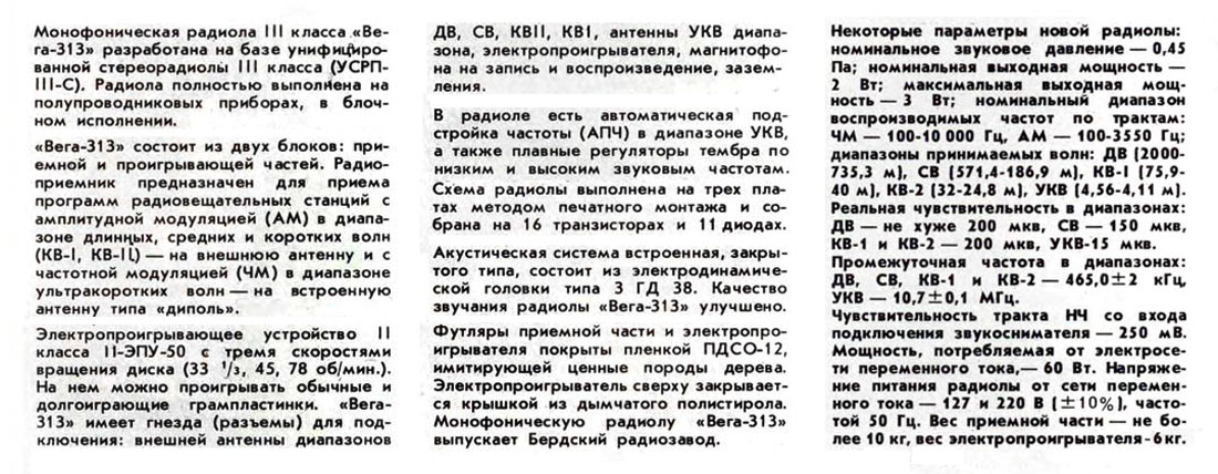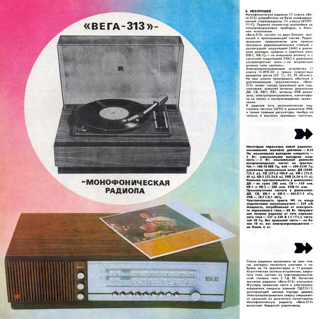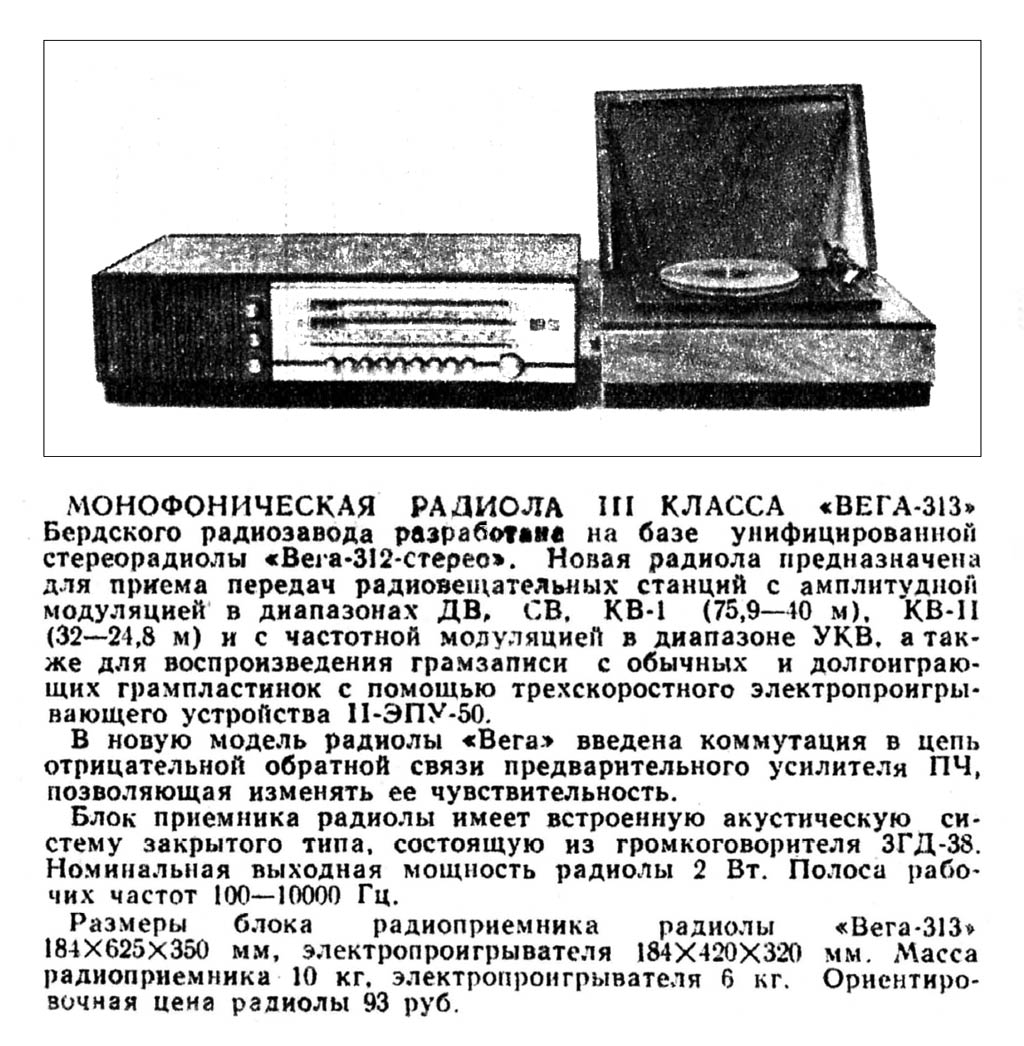 транзисторная радиола "Вега-313" с I-кв 1973 года выпускалась на Бердском