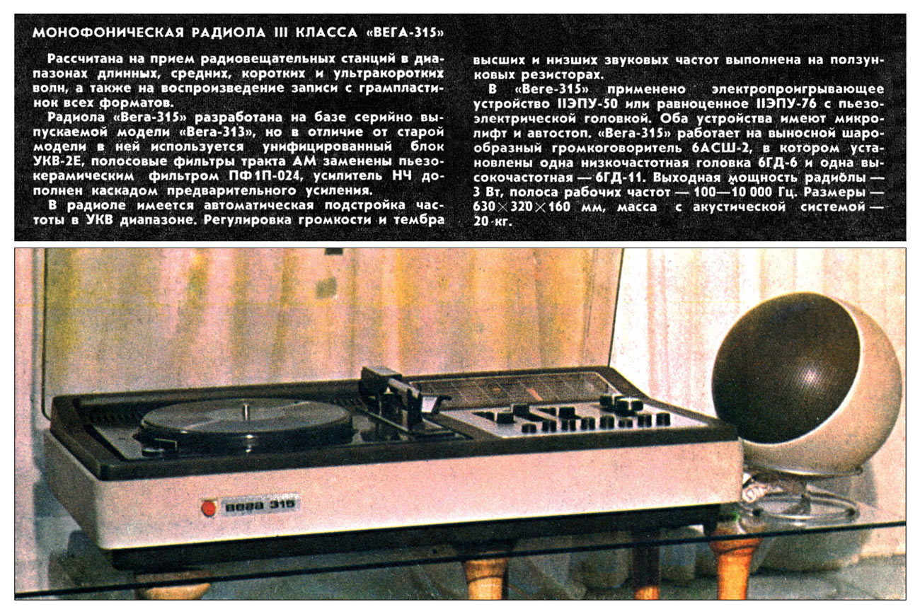 "Вега-315" подготовлена к выпуску с 1976 года Бердским радиозаводом. Она