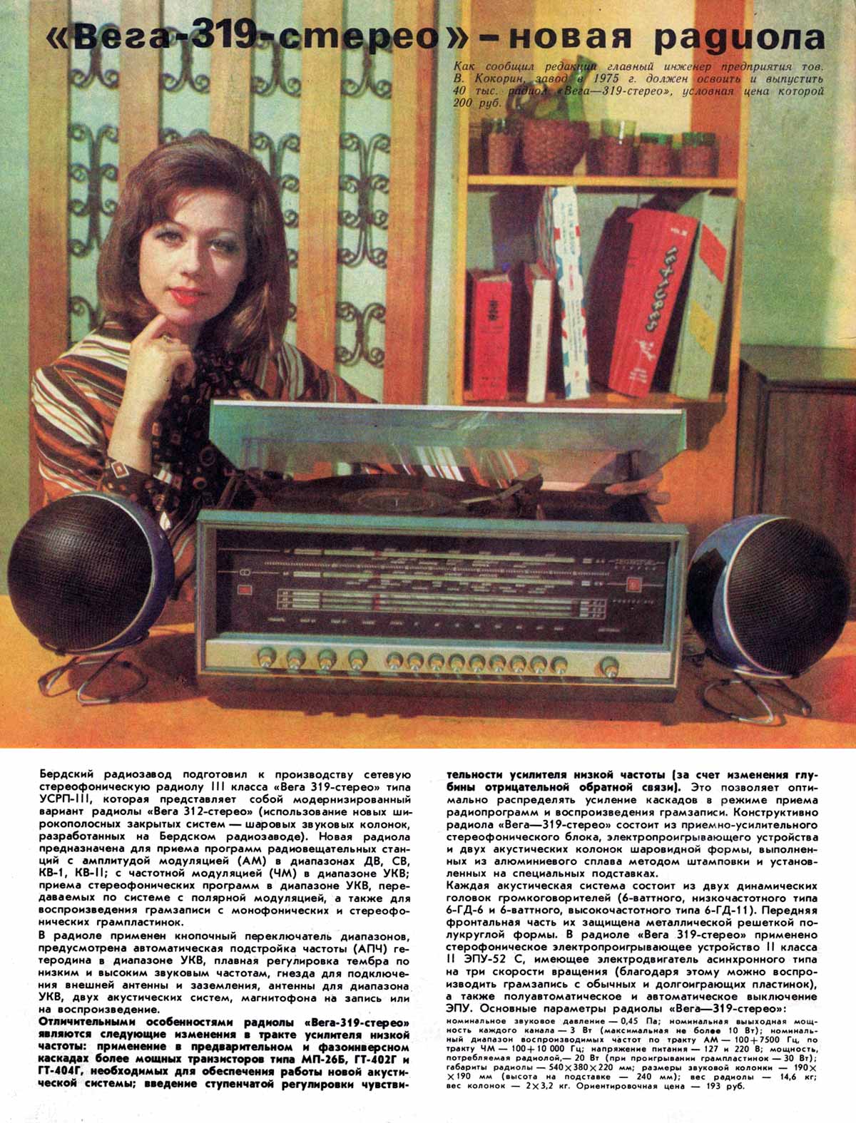радиола "Вега-319-стерео" с осени 1974 года выпускалась Бердским радиозаводом.