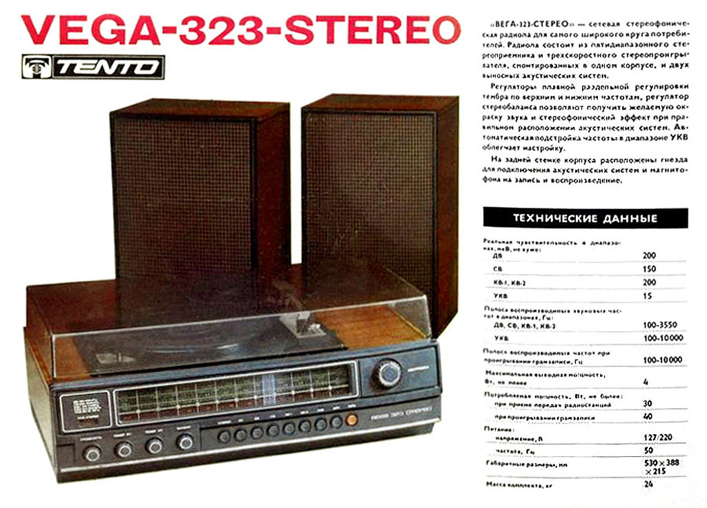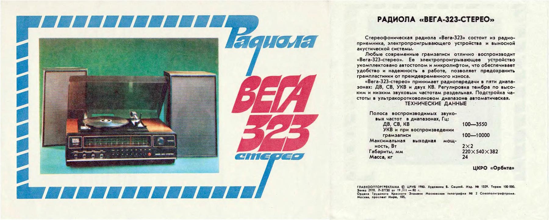 радиола 3-го класса "Вега-323-стерео" с 1979 года выпускалась Бердским