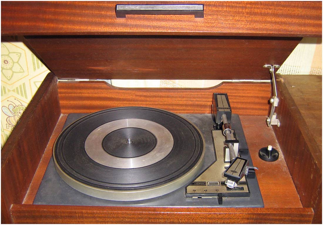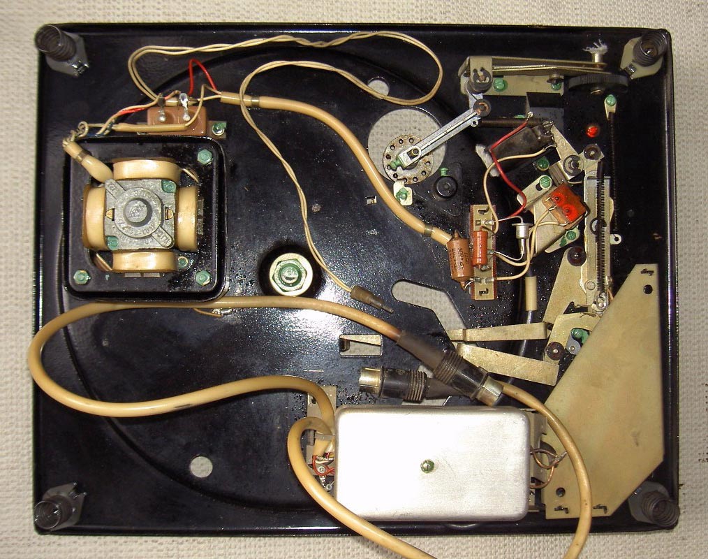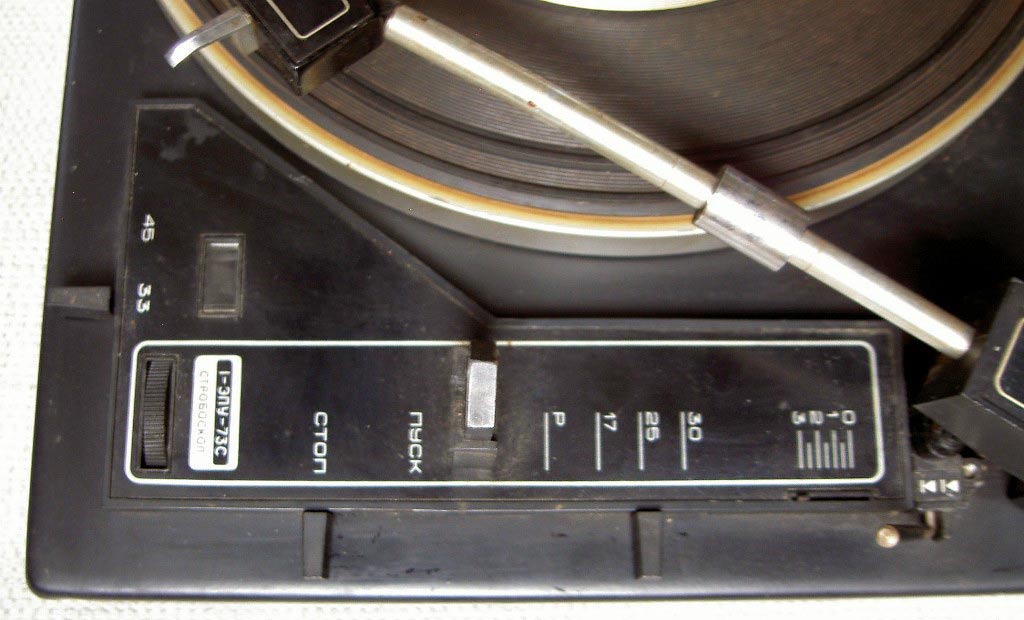 стрелочная индикация настройки на станцию. В радиоле используется четырёхскоростное