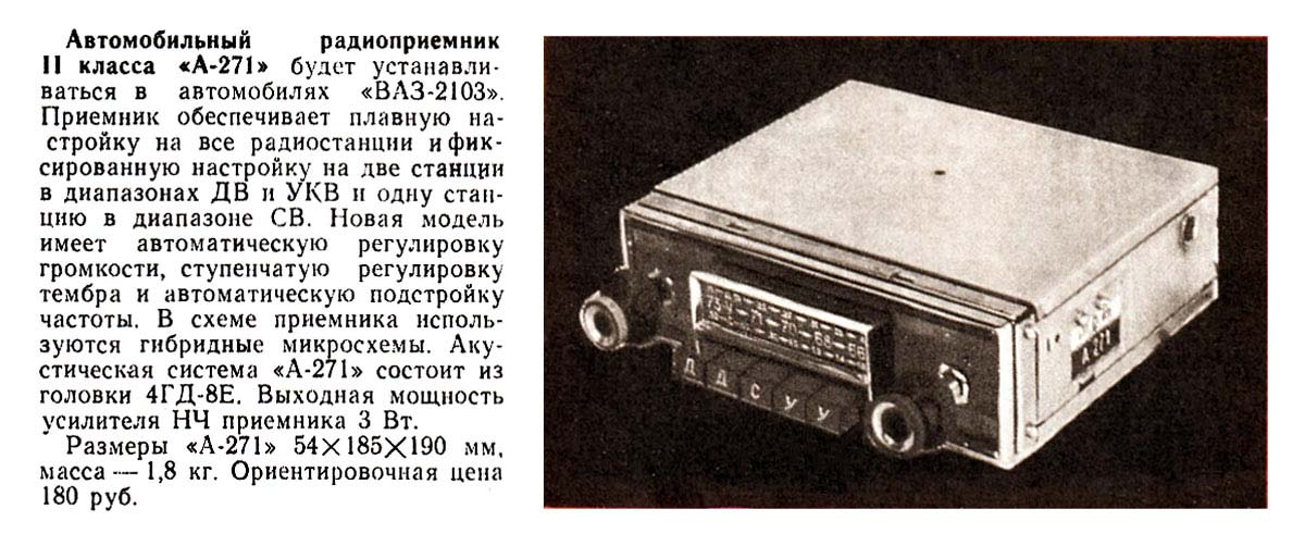 автомобильные ''А-271'' и ''А-271Г'' с 1974 года выпускал Муромский радиозавод.