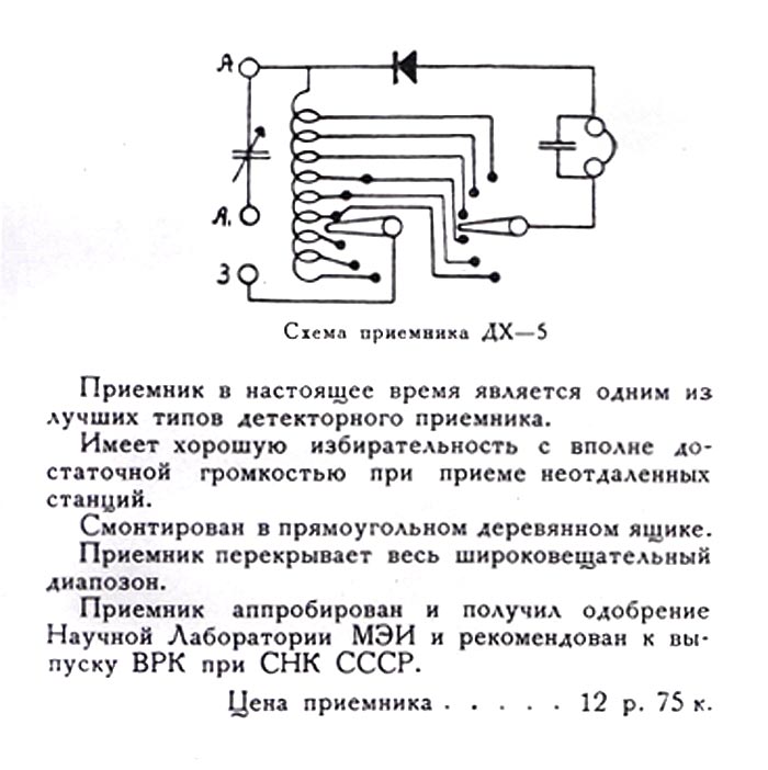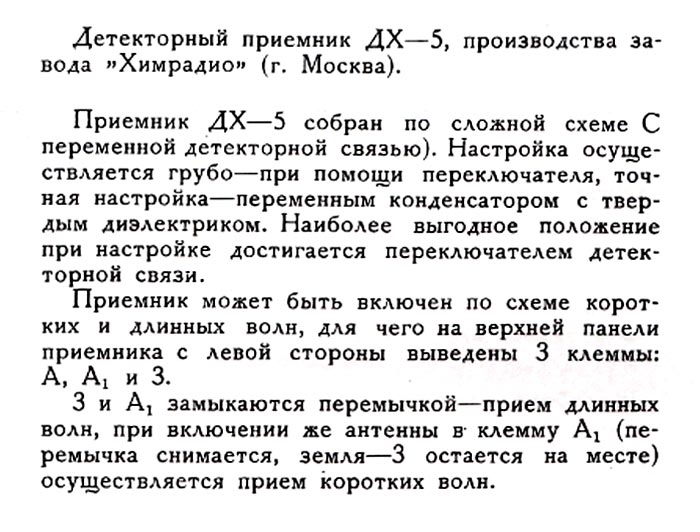 Детекторный радиоприёмник "ДХ-5" производился возможно с 1933 года Московским заводом "Химрадио".